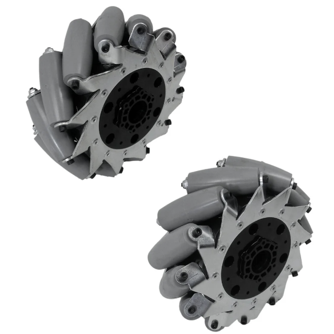 Mecanum drive uses 4 special wheels with rollers at 45-degree angles. By controlling the speed and direction of each wheel, the robot can move in any direction.