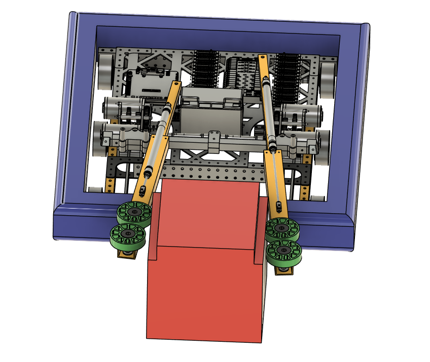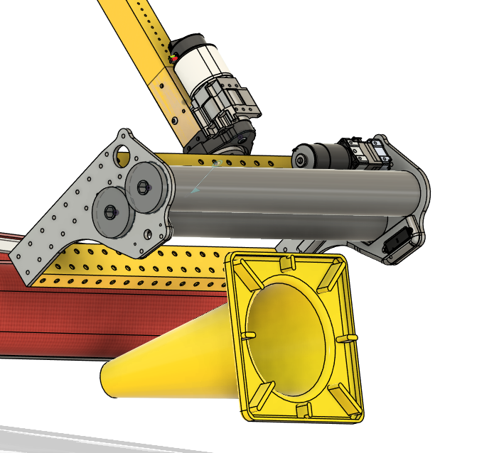Description: Vertical wheels that spin on each side of the intake, used to pull the game element into the robot. Similar to a claw mechanism but with spinning wheels that actively grip and draw in game pieces.